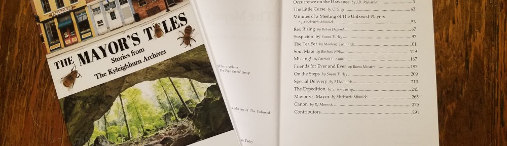 Just wanted to announce the Off the Page Writing group is holding a Book Signing on February 8 from 7-9 pm for our newly-published anthology: The Mayors’ Tales: Stories from the Kyleighburn Archives.